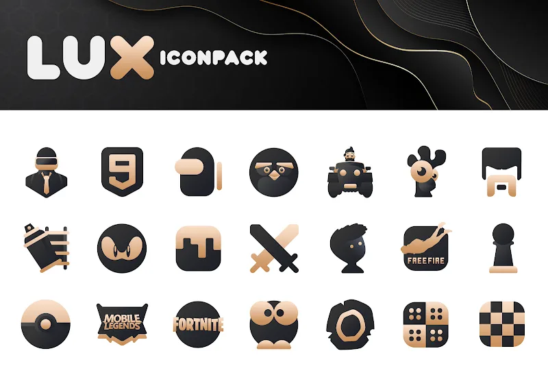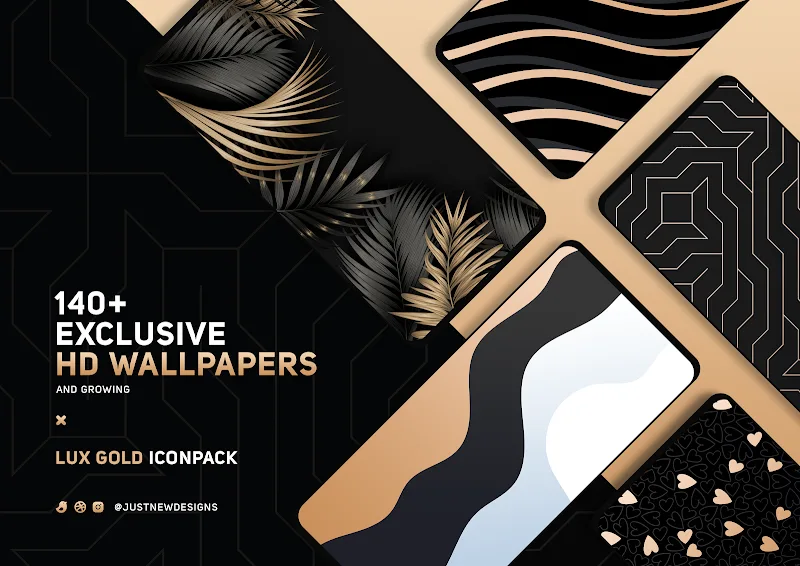 The perfect combination of two high-contrast colors, matte black and gold, will make the icon pack in Gold IconPack: LuXGold stand out. Users will feel the elegance and modernity of this special icon pack. Each icon and wallpaper in the pack has a mysterious beauty.