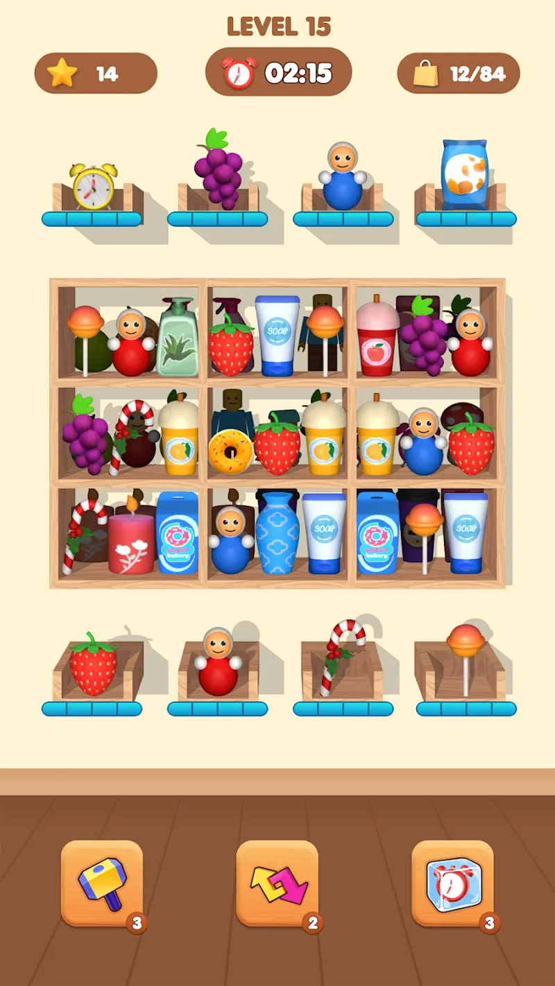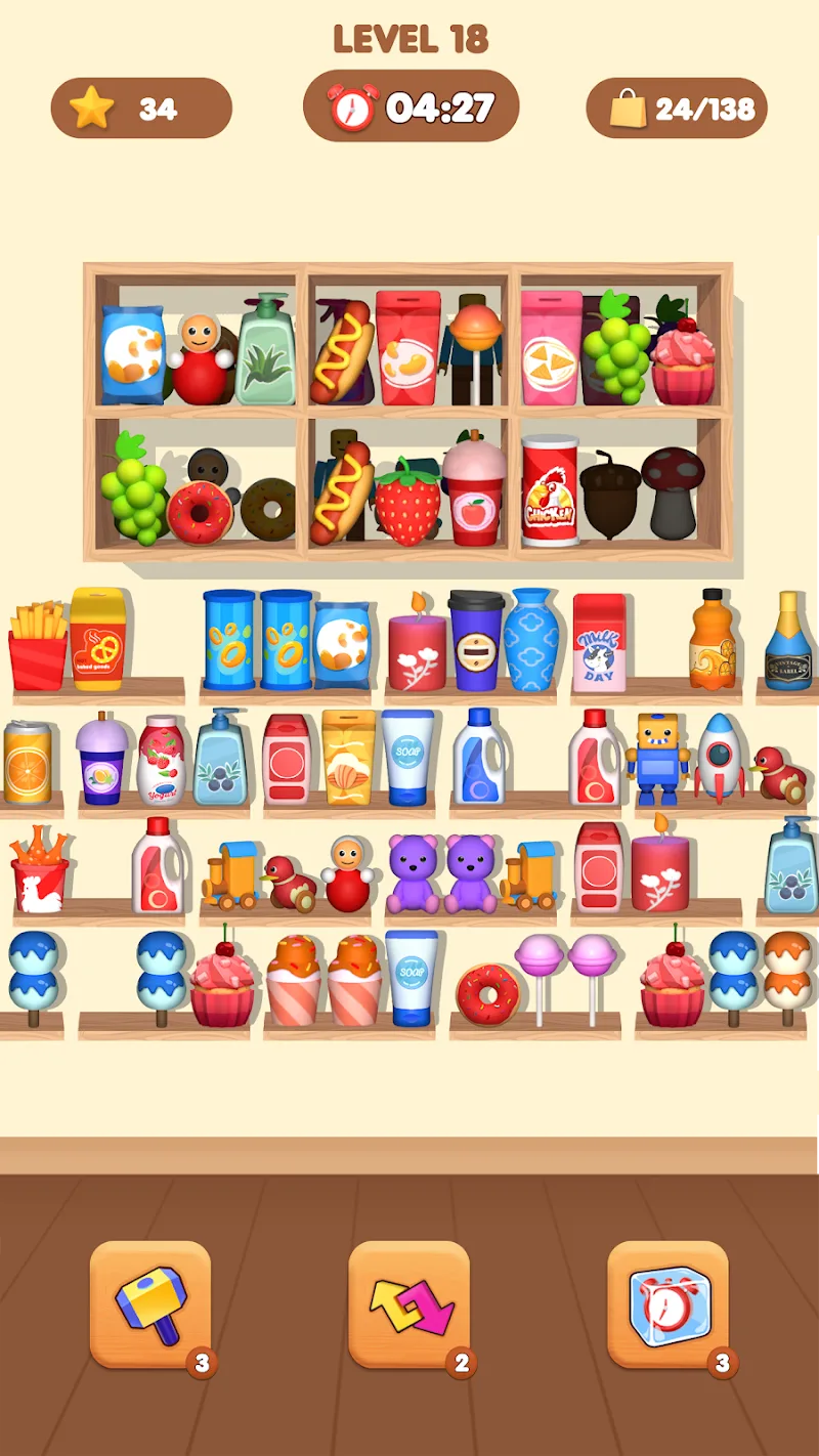 Goods Mix Puzzle Master! will bring you exciting and interesting intellectual games. Coming to this game, you will come to countless unique and interesting puzzles. In this game, you will have to use your intelligence and arrangement ability to pass the level quickly and easily. What are you waiting for? Quickly come to these interesting fun right away.