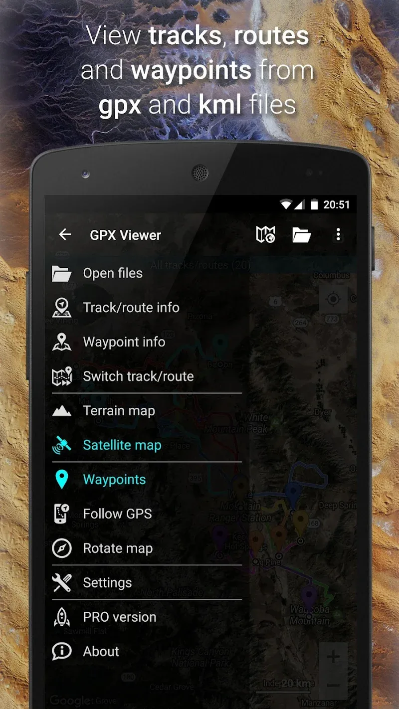 - At its core, GPX Viewer renders GPX, KML, KMZ and LOC files as movable map overlays with stylized lines and icons. Pan, zoom and rotate to inspect routes on granular levels. Waypoints reveal details like photos, comments and elevation on tap. See your data come alive!