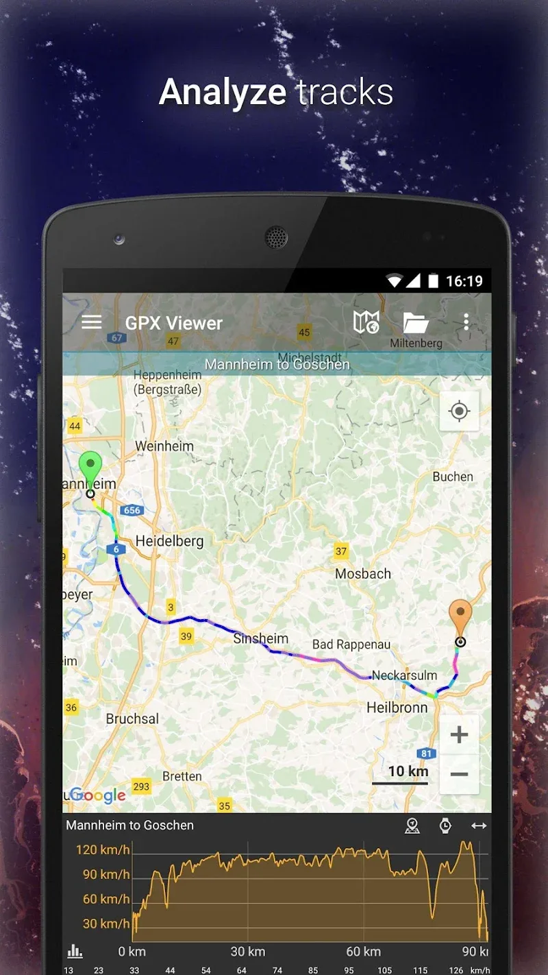 - Enable your device location and watch as GPX Viewer displays and tracks your real-time position on the map as you move. Auto-follow and rotate map options keep you centered. The app transforms into a navigator!