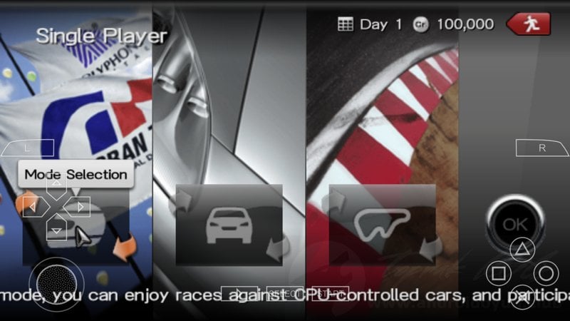 Unlike previous versions, Gran Turismo PSP does not have a traditional career racing mode. Instead, players will choose the car, the track, choose the level of opponents and the number of laps, and the rewards will be automatically adjusted depending on your choice.