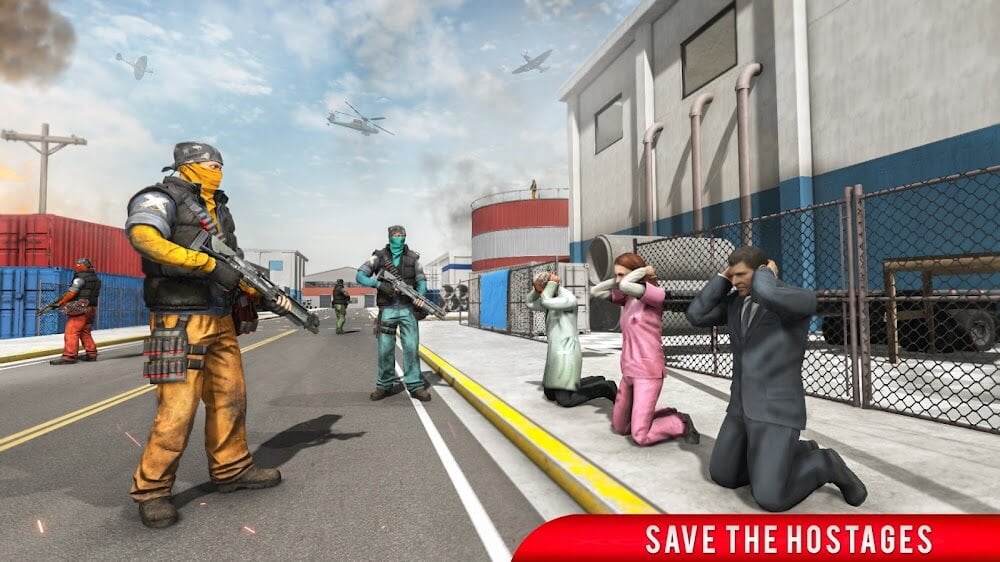 Gun Games Offline – Survival brings players terrorist missions where they will use modern weapons. Many powerful pieces of equipment have been prepared, and you just need to bring them to the battlefield. At the same time, targets often appear in different locations and require each person to find the right strategy to complete the mission. FPS gameplay brings a detailed and realistic experience through the first-person perspective. Surely, players will spend time getting used to and practicing quick reflexes against opponents. But everyone feels the excitement that the game brings.