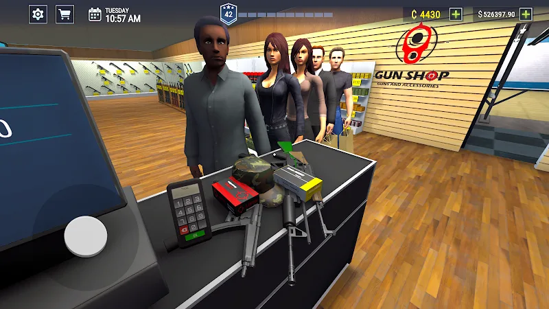- Smooth Animation: Weapons handling and customer interaction smooth movement is experienced. Optimized movement and action effects make the game more interesting.