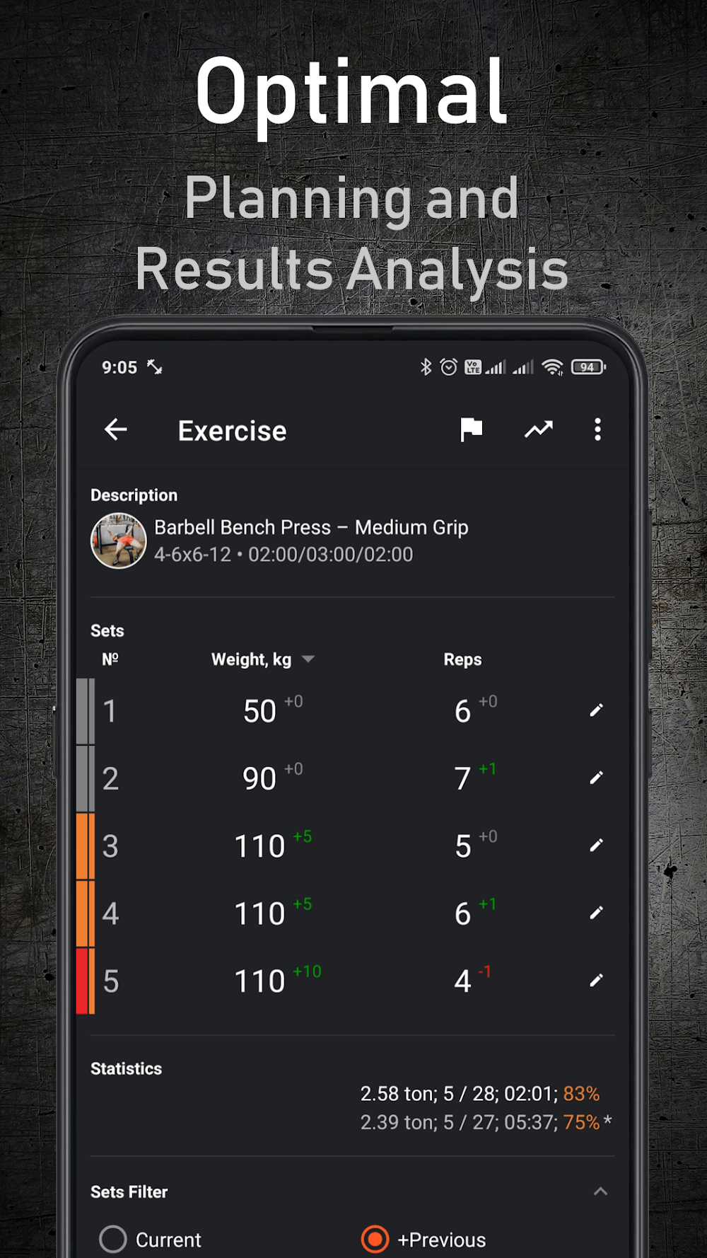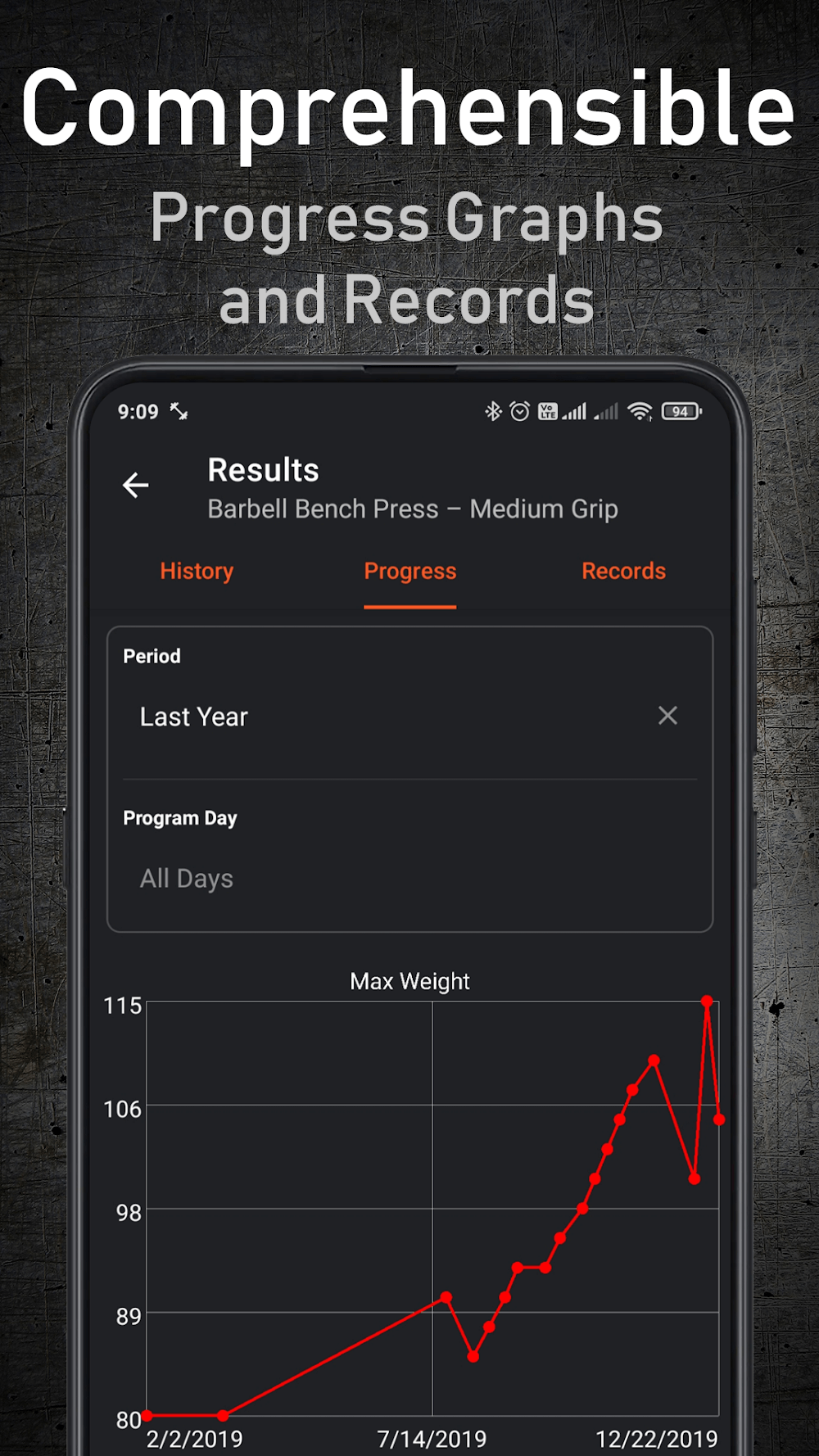 View previous workout data, create progress graphs, and view current numbers. With this information, you can quickly plan your current methods and discover areas for improvement, such as load, reps, rest, or total reps. Approach.