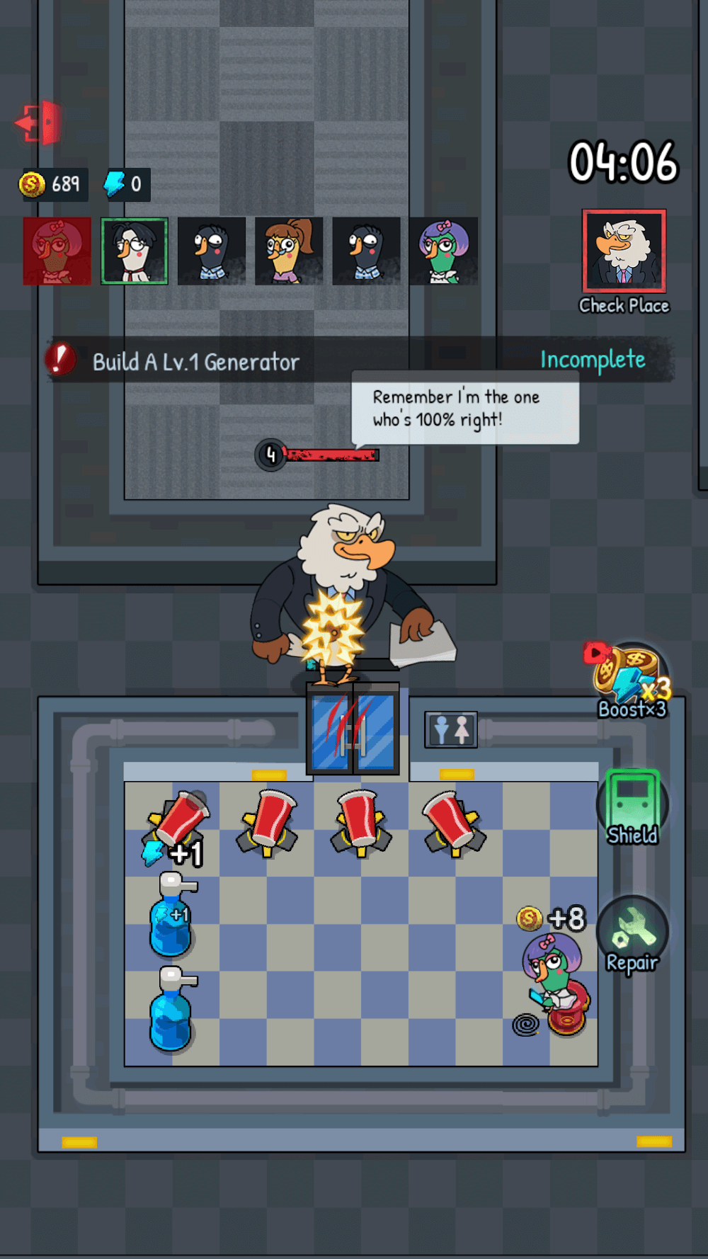 All players who start their part will have to fight for their survival until dawn. Lying in bed and mining for gold is your only way to protect your safety. Players can create powerful survival aids by increasing the economy and fighting duck bosses. However, you also have to be careful when using various props properly, and specific personalities can enhance the usefulness of those items. To become the winner and unlock additional difficulties, complete the game within a certain time or defeat the goose bosses.