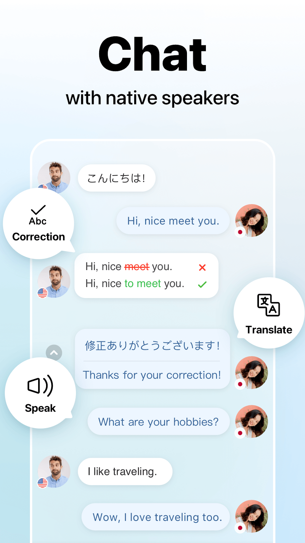 The first plus point related to HelloTalk is that they can be corrected by native speakers. If they just say a sentence that is grammatically incorrect, the user will immediately be corrected, and they will try to practice that sentence continuously until it becomes their own. Some answers from native speakers that are difficult for users will be translated quickly and completely accurately by the system. From there, they not only improve their vocabulary but also learn more natural, reasonable, and grammatically correct ways to speak. Surely, as long as users maintain this practice habit for a period of time, their skills will immediately improve quickly.