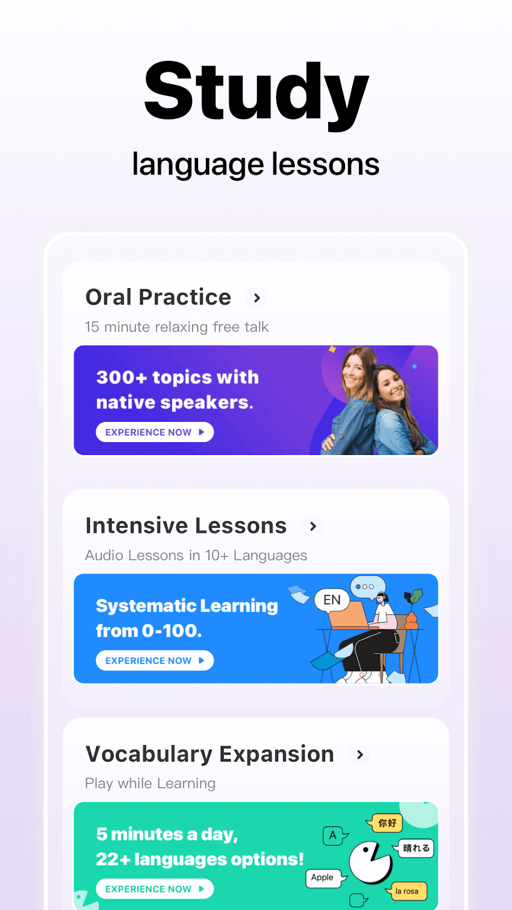 - Bring keywords into conversations: The application supports users in applying new words immediately and gradually forming appropriate habits.