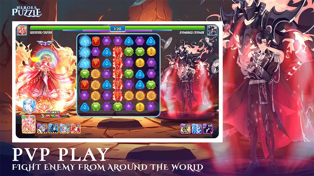 - Strategic Depth: The gems to perform the match-three process often have extremely diverse effects. Specifically, you can perform attacks, collect enough energy, or activate a special skill.