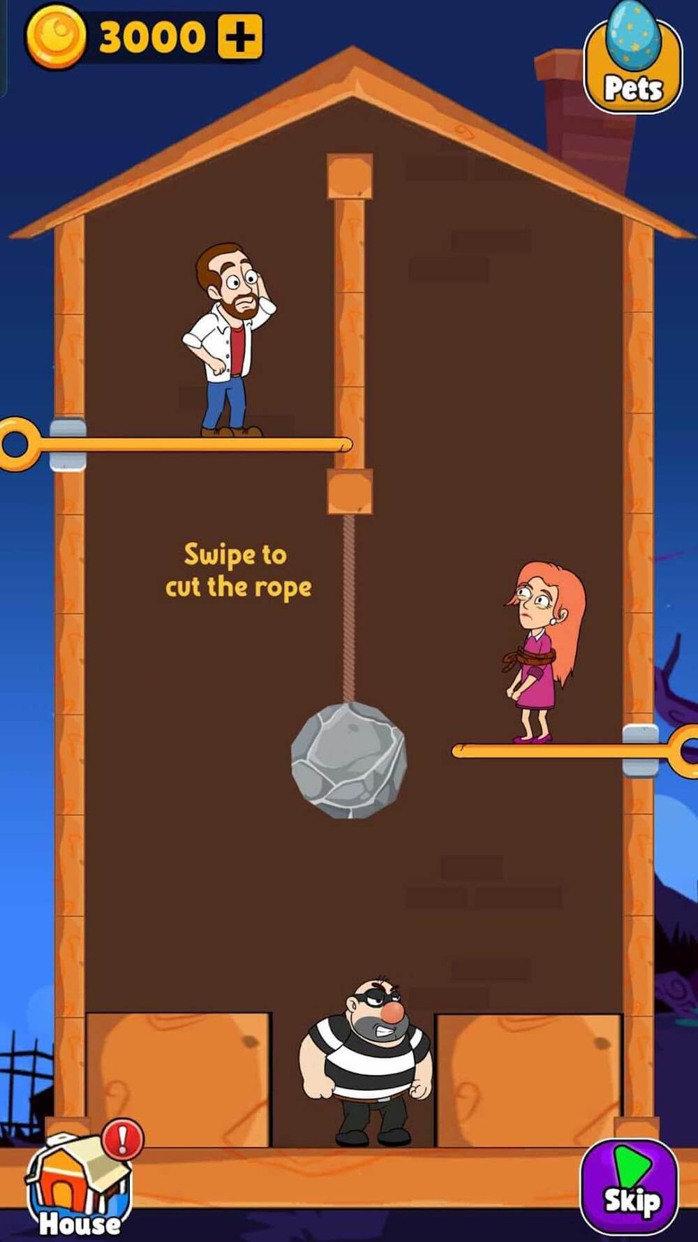 Home Pin: Pull The Pin Puzzle creates an interesting journey of Edward as he accompanies his family through many areas. Once he becomes rich, owning a mansion becomes simple with spins. The main tasks are the basis for each person to quickly have a mansion.