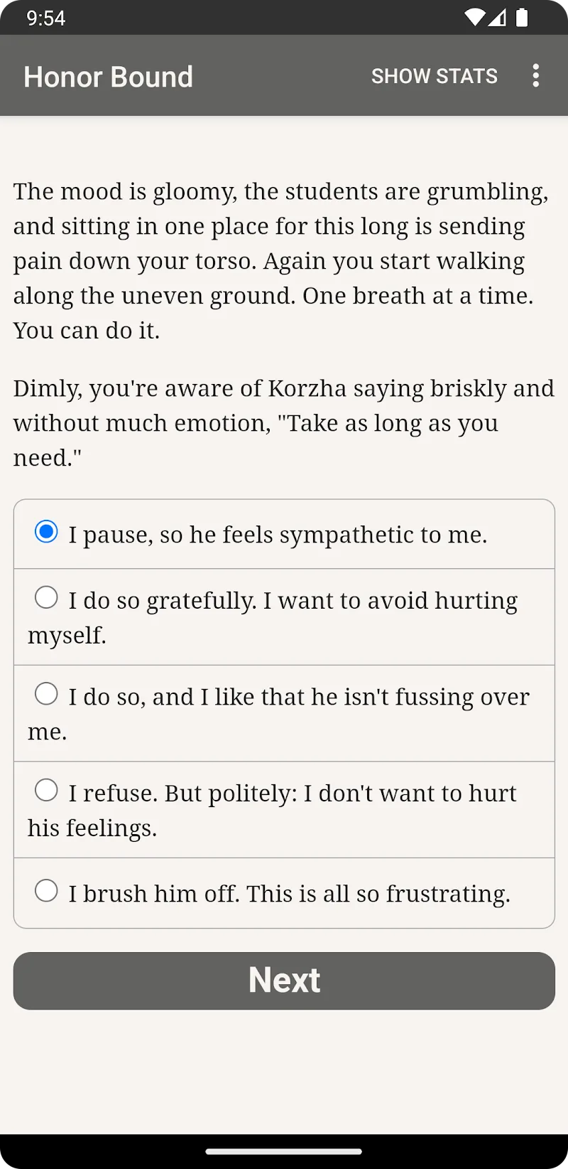 Honor Bound is a unique game that takes players to an interactive experience through text. This game has absolutely no images, effects, or anything else. The player’s task is to read and imagine the story according to their way of thinking. You can make personal choices to lead the story in the direction you want.