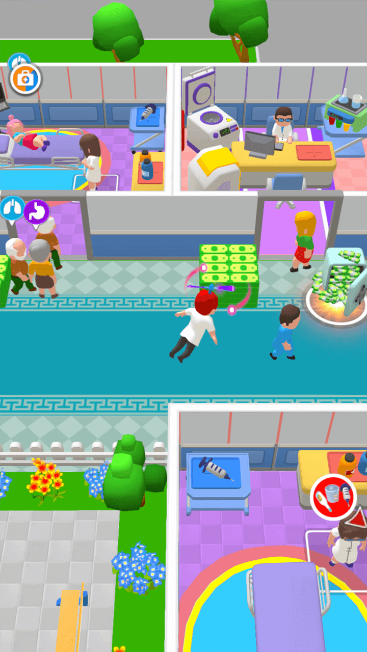 Hospital Sim: Fun Doctor Game is a management game that is both exciting and entertaining. The action begins with the player assuming the role of a hospital administrator. You have been tasked with expanding and modernizing the hospital to provide the best medical care possible to the surrounding community. You will be in charge of the entire hospital and assisting patients with any health issues they may be having. As a full-fledged doctor, you will face difficult situations, and you must maintain your cool and be patient with your patients.