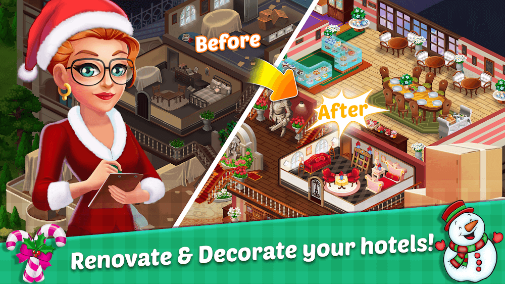 Players will primarily rely on the daily mission system for financial rewards for their hard work and dedication to their favorite hotels. The work’s content is extensive and entertaining, and it expands to include many new things for players to enjoy and explore, depending on the variation. Higher levels require more effort, but the benefits are exceptional and long-term benefits to the hotel, and even your fame expands to the world.