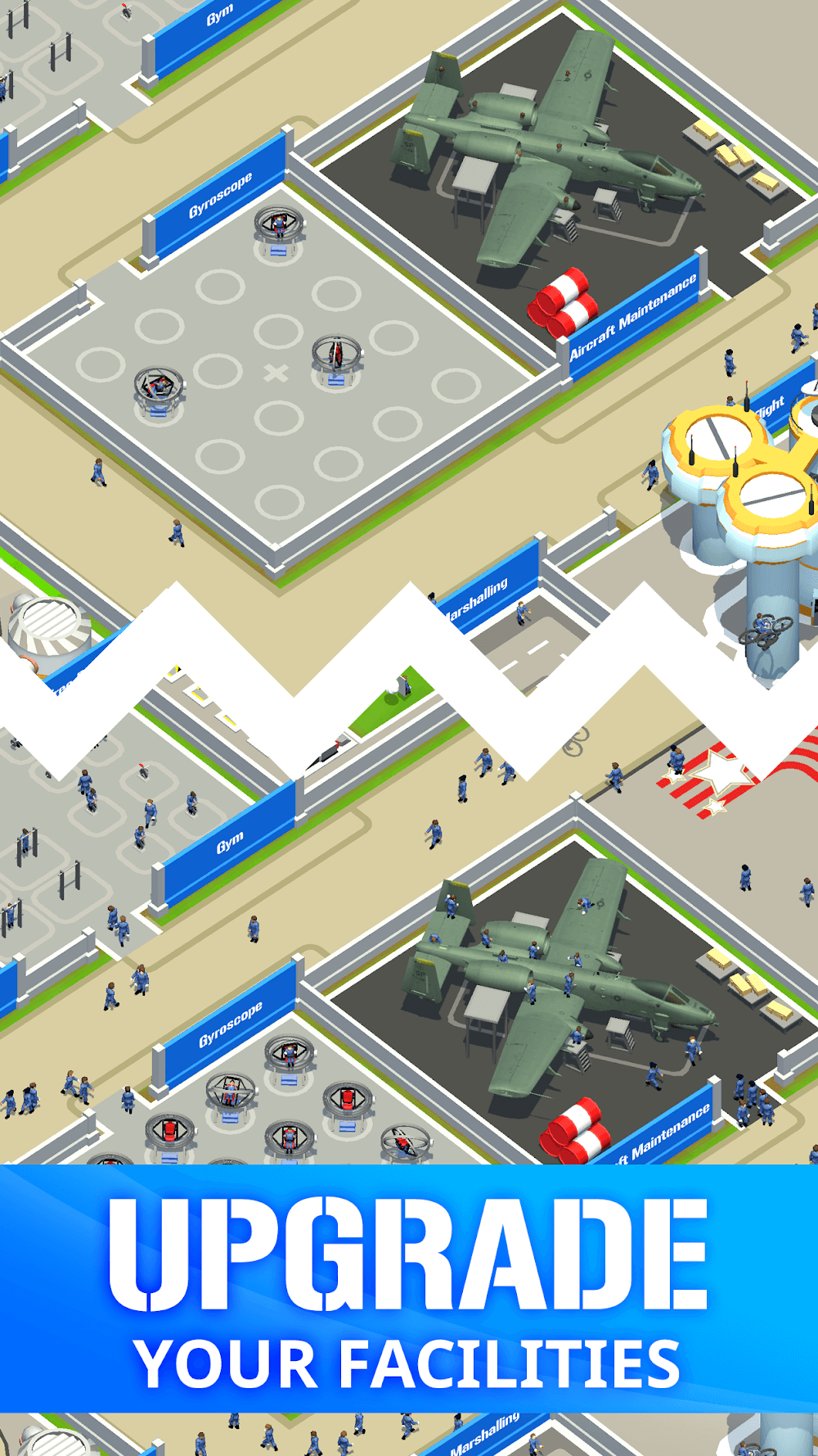 Apart from all these training centers, the central and vital training for the battle is Pistol Range training which gives the team basic training to use firearms. And another important thing for the Idle Air Force team is fitness maintenance, so buy a Gym to train the fitness exercises for the team. You should purchase many other training centers in the Air Force Base to train your team and win the battles worldwide and conquer them.