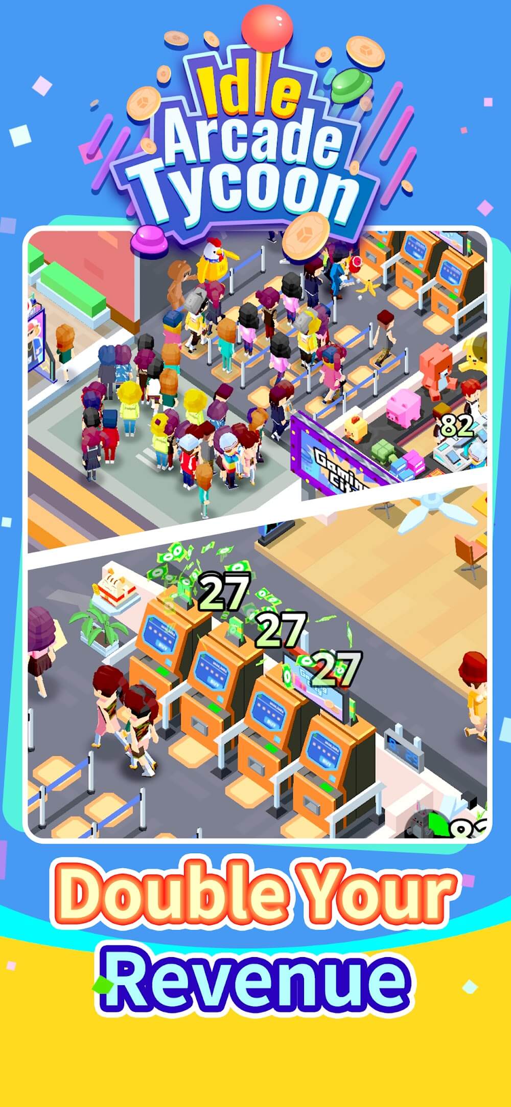 Idle Arcade Tycoon is a fascinating game with a unique business model so you can practice the necessary skills and become the most talented manager. In this game, you look after your video game store and perform tasks to meet their needs. Everything is in your hands, so work hard to expand your business and earn the highest revenue.