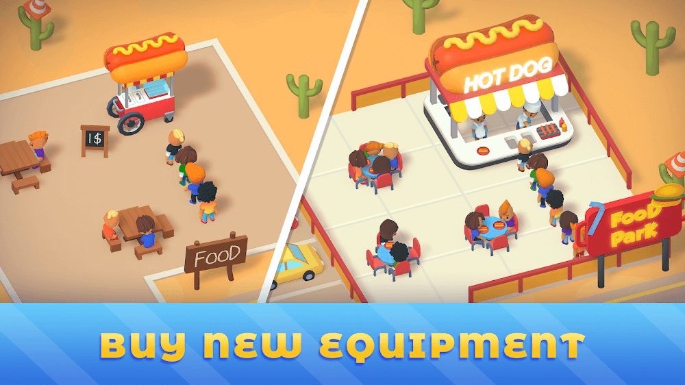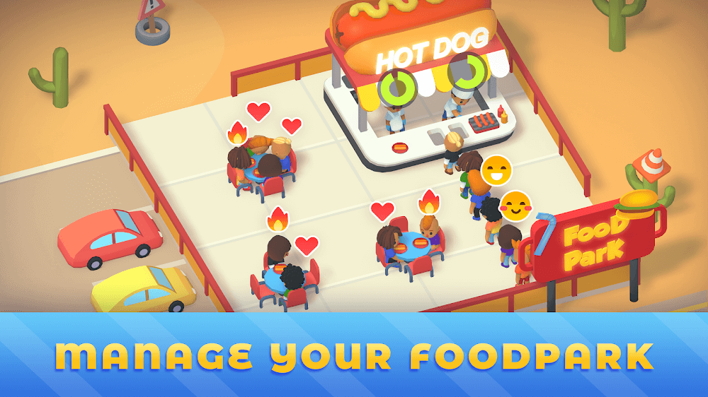 Idle Food Park Tycoon restaurants do not have unlimited seating. Therefore, many customers will have to stand because no seats are left. Those who are still waiting are certainly eager to enjoy your food. Keep these customers coming back as much as possible. Create advertising models to keep consumers engaged and entertained. While you wait for guests to leave, replenish the basket with snacks. The higher your customer retention rate, the more money you make from them. There are more and more opportunities to add more seats. Customers served per unit time should be increased while waiting time should be reduced.