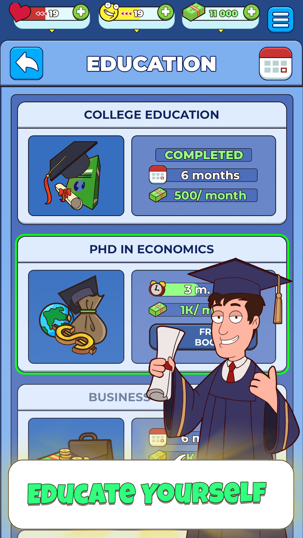 • Become a tycoon: Becoming a business boss and climbing to the top, you’ll become a business master and a master in every field to develop everything, you will climb to the peak to develop your career under the admiration and admiration of others.
