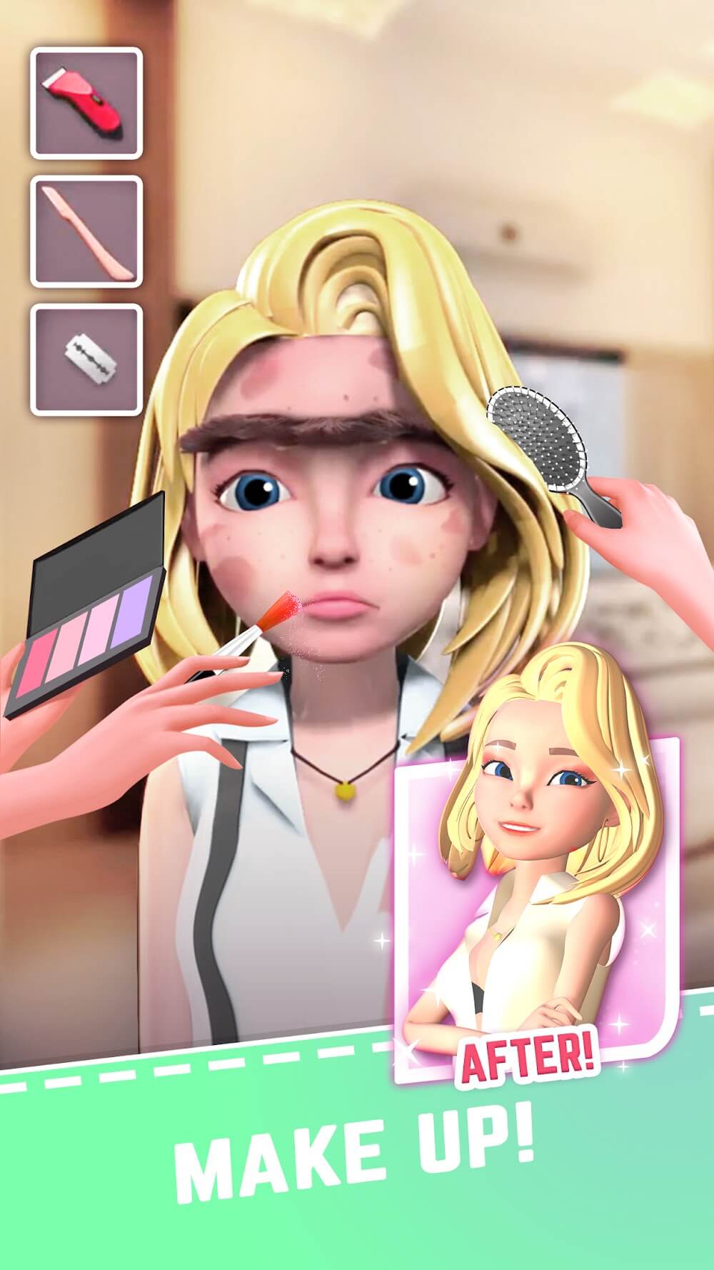 Making oneself presentable before going out is not a given for everyone. As a result, they have had a difficult time for a long time, to the point of self-hatred. After all, their peers rejected them because they were ugly. You will be a hero in their eyes. As players enter Idle Magic Makeover, they are greeted by a man with unpleasant acne, braces on his teeth, and an out-of-date hairstyle. Then there’s the girl who dresses, has unimpressive hair, and doesn’t wear makeup on her eyes or lips. They will seek your assistance. Players must figure out how to make themselves more physically appealing through various tools to advance.