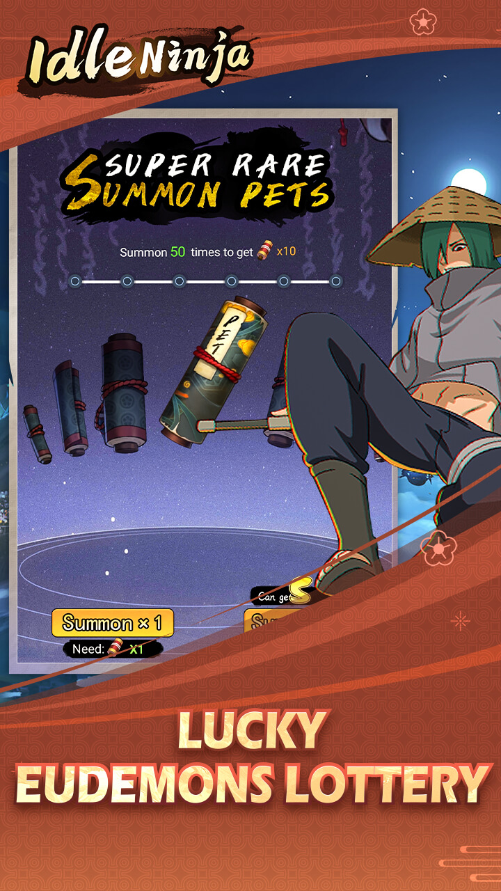 When you first start in Idle Ninja – Summon Eudemons, you will receive your pet, and they are the main force so that you can fight all enemies quickly. However, your pet is still fragile, so you will need to upgrade them to increase the Power stat, and the higher the Power stat, the stronger your pet will be. When you reach a certain level, you will unlock the Adventure feature and be ready to participate in thrilling battles. Most pets will fight each other and be automated, so you don’t need to do too much. To improve your pet’s strength and increase damage in battles, you need to give them more skills such as Thunder Ax, Natural whirlwind, Fireball, Water shark, and many more.