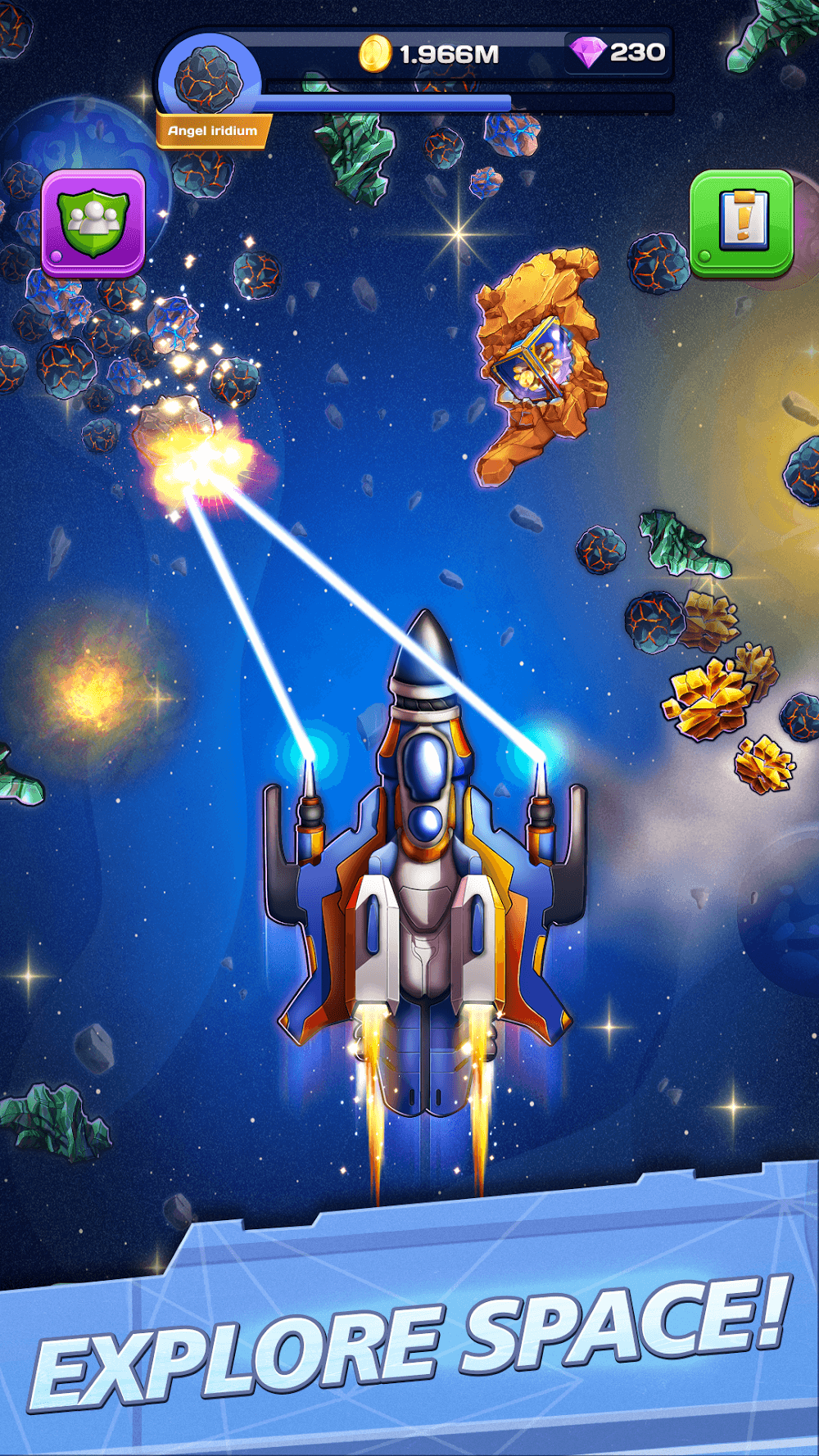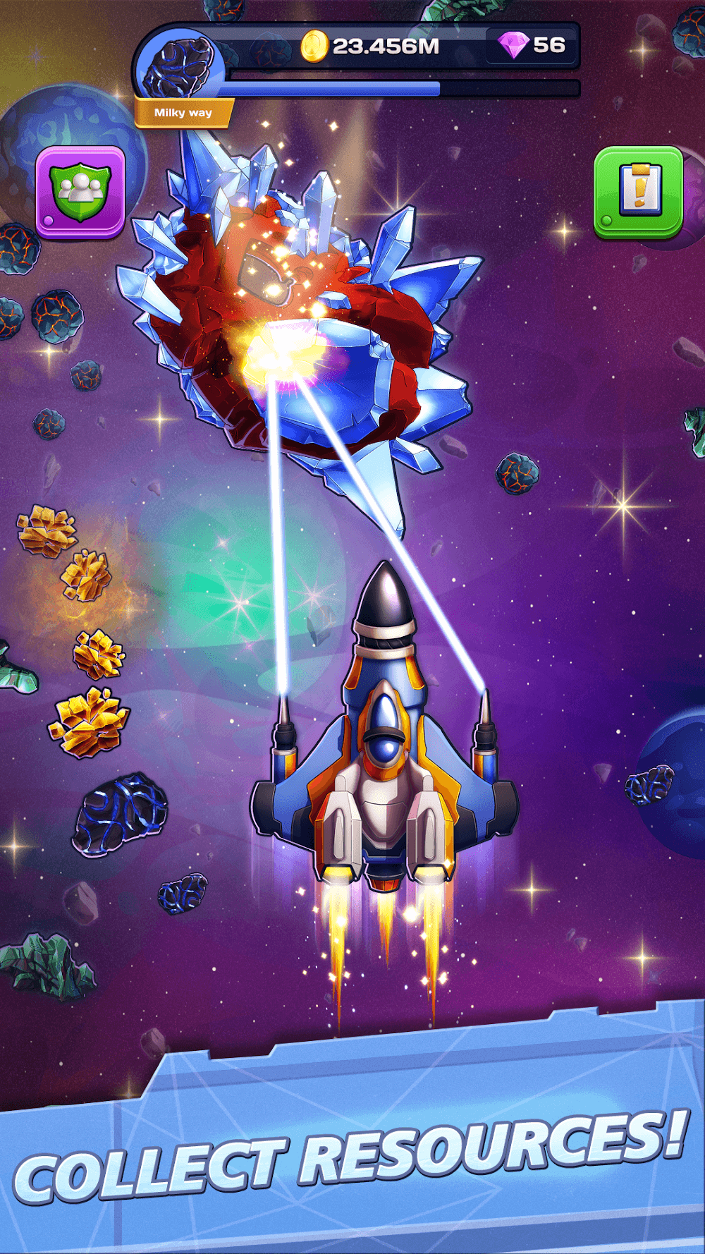Space Craft with high configuration will help you earn more resources and coins because it can use multiple weapons that can blast obstacles on the way of exploration. To upgrade your spacecraft from the application, you need to collect the resources from the exploration. You can buy from the marketplace using the coins and diamonds earned in the previous quests. Each resource has a different power, like a laser, magnetic force, blaster, identifier, etc. Laser resource is used to blast the obstacles. Magnetic force resource is used to attract the resources available near our spacecraft, a blaster is used as a weapon to get rid of the obstacles, and an identifier is used to find the resources and crew members during the exploration. After completing each level, you will earn more coins and diamonds and feel excited. Controlling the space with your excellent strategies makes you more confident in completing the levels.