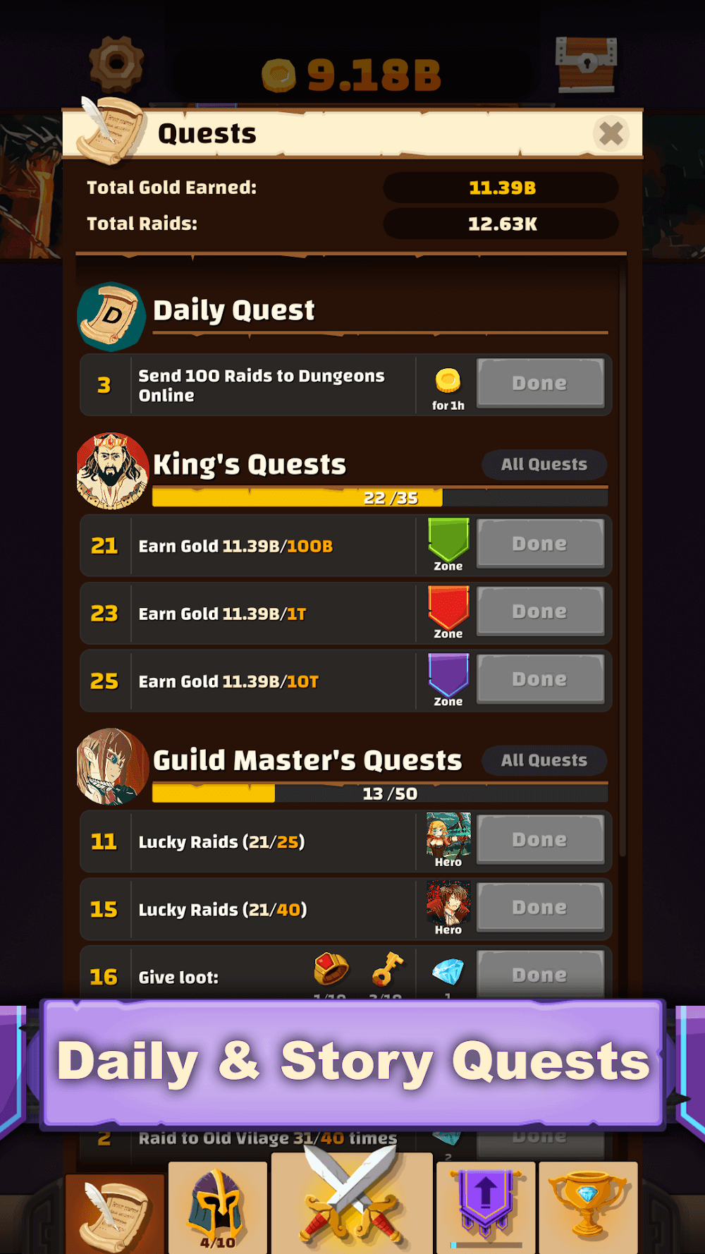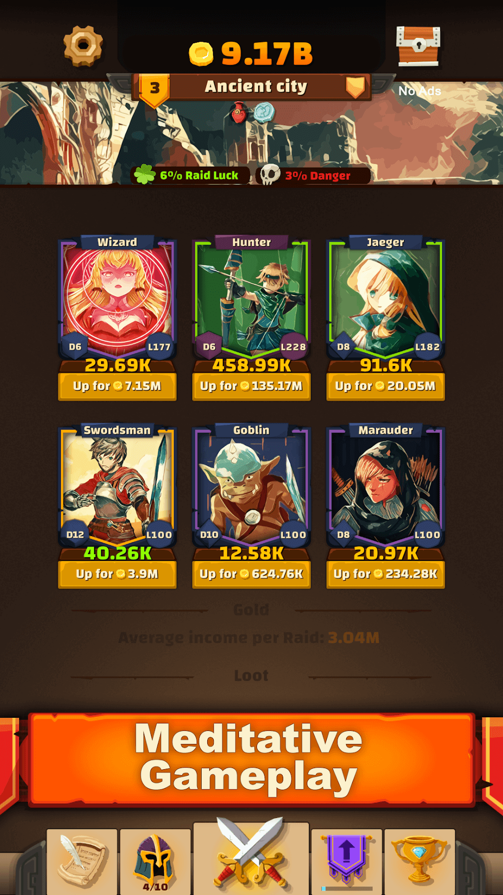 The system assigns new tasks every day to the players at the mailbox. Idle Raids allow players to choose their favorite warrior to use in the upcoming battle. Information on the characters will be provided right on the screen so you can make the most suitable choice. In addition, the system updates the map for each arena to make it easier for players to locate. The player handles the levels, in turn, to come to the boss confrontation quickly. You can bet your winnings to get double the original bonus. However, players must have flexible manipulation and a suitable strategy to gain the advantage. Daily roll calls can help you collect more free gold.