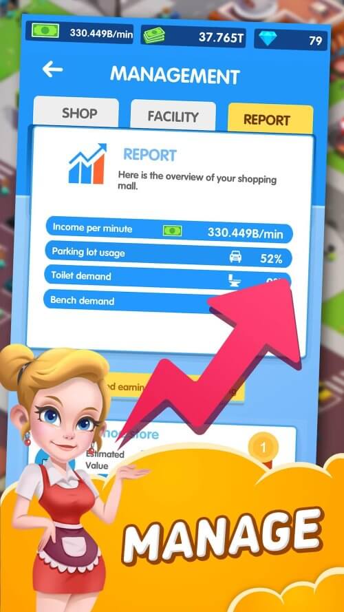 Starting with a small coffee shop, you can become a shopping center tycoon. Get rich quickly so you can invest in new cafes, delis, bookstores, shoe stores, restaurants, etc. Around 400 different types of stores are waiting to be discovered and improved. The shopping mall has a diverse selection of stores and goods. Make plans to expand your business and attract more customers, such as installing chairs and nice restrooms.