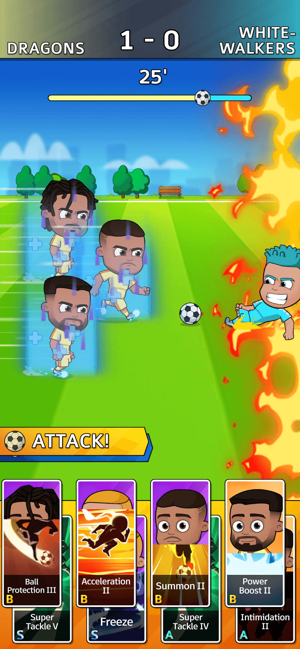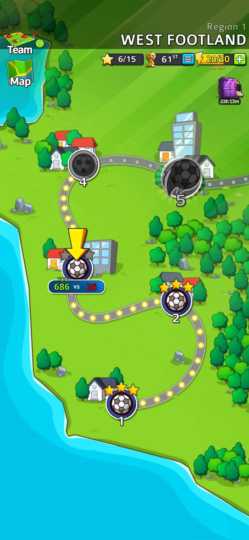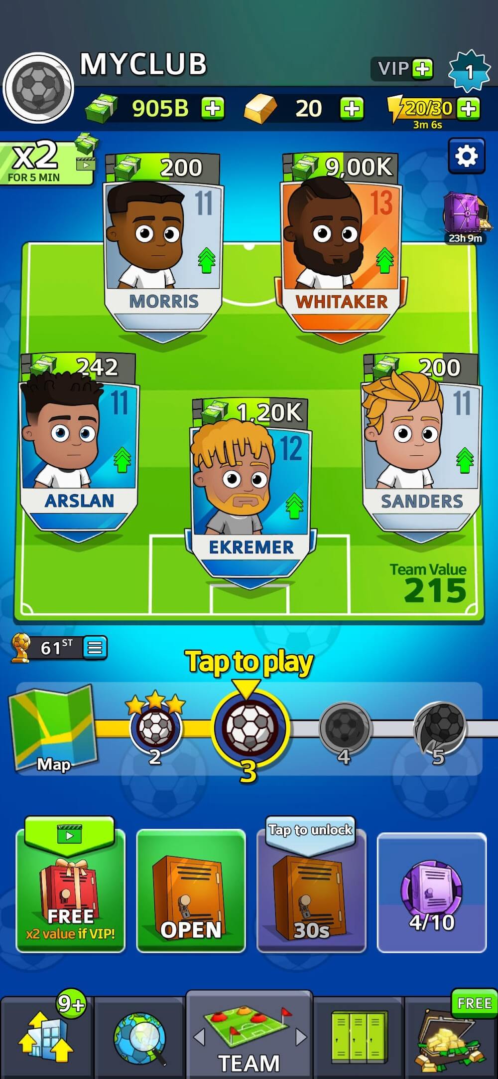 There are multiple levels, get a 3-star rating in each one. Build, train, and upgrade your team before starting the challenge. The game provides you with a map to explore the world and gradually increase your ranks. Select the events on the map that best suits your soccer club and collect daily rewards and cash. Even though it is an animated soccer game, the visuals are realistic and resemble real-world Football with the same rules and business tactics.