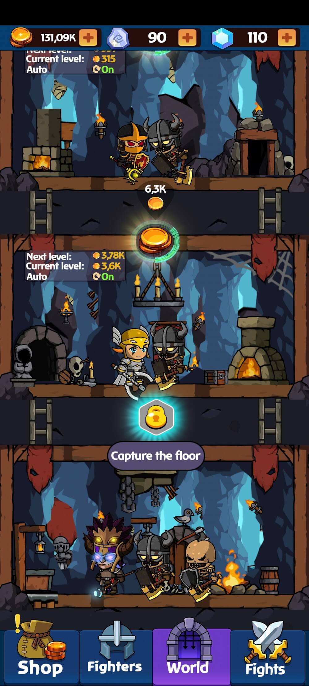 - Choose heroes: To control the floors, you must choose the heroes from plenty who have unique powers and skills. And use their powers to earn more profit and gold.