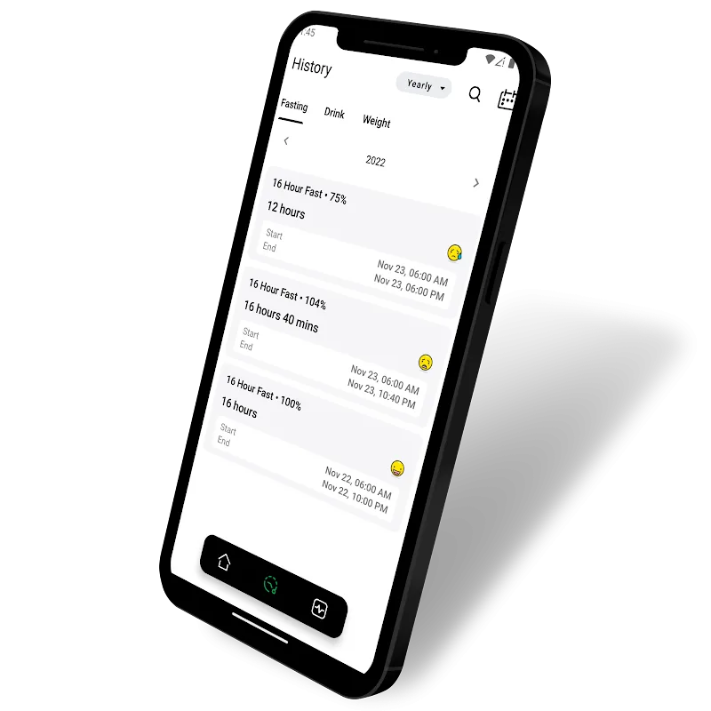 Stay motivated by the in-depth fasting analytics of iFasting Pro. Charts illustrate your fasting frequency and consistency helping identify needed improvements. Review weekly, monthly and yearly trends. Check stats like longest fast, average weekly fasting hours and fasting percentages. Detailed reporting illuminates the bigger picture so you understand the impact. Make each fast count!