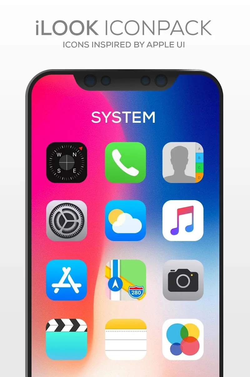 - Creates Pure Look: The application supports users in creating a more wonderful interface for the device. The customization process is easy and always under the control of the user. The beautiful icon pack with Apple style brings a more special feeling when experiencing.