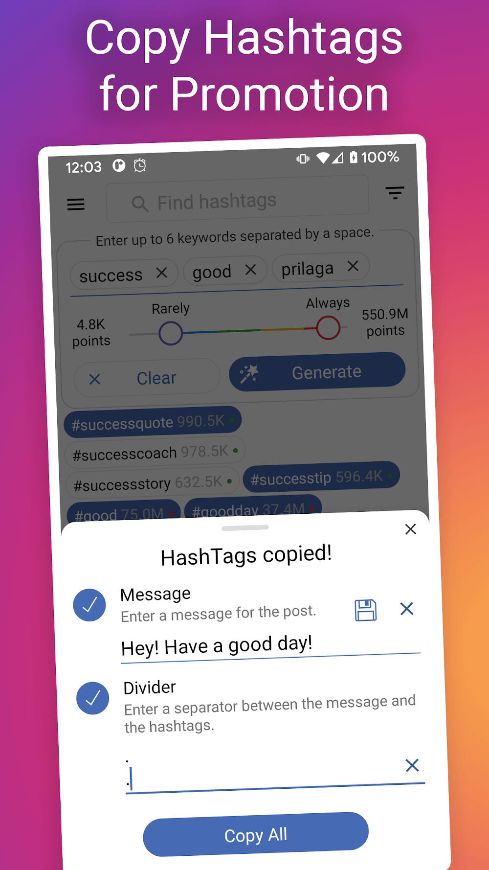 With this application, you can create viral hashtags quickly and easily without encountering any difficulties.