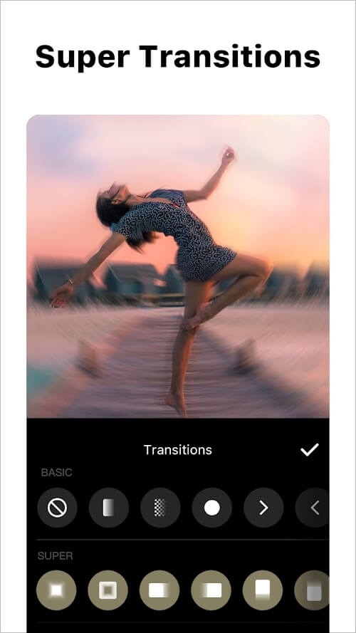 - Transitions: Slide, wipe, spin, and glitch are all effects used frequently in video editing. Even professional videos edited by experts are still used as usual. You can reach an expert level in just 1 second to 2 seconds.