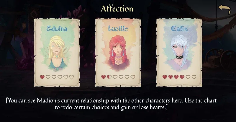 - Players can choose a romantic relationship between male/female or male/male with three main characters with different personalities and fates: Lucille, Calix and Edwina.