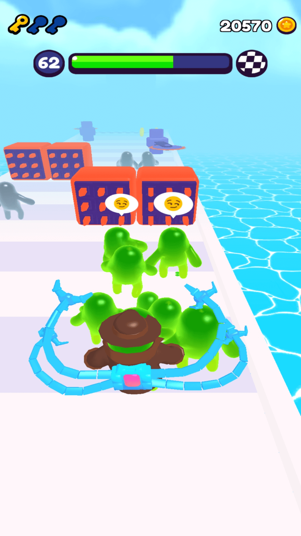 - While playing, you must collect a crowd of blobs, overcome all the obstacles, grab the keys, and break down the opponents by attacking them.