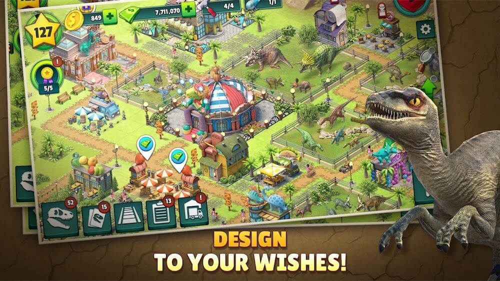 - Manage Finances: Unlocking new facilities or new dinosaurs is just the beginning. Players will then need to use their gold to buy them so they can be placed in their park. And of course, the main part of the player’s income will be from park tickets.
