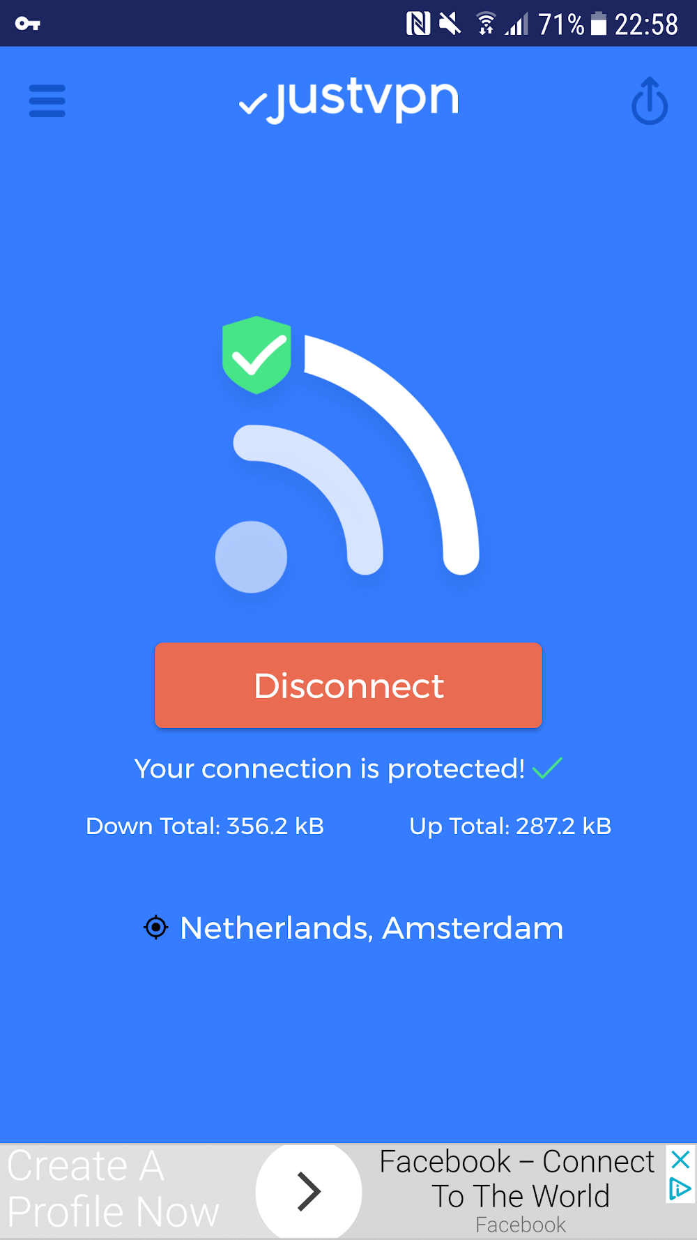JustVPN has managed to craft a user interface that’s remarkably easy to navigate. You can activate a secure and stable connection with a single click, regardless of where you are. Whether cozy at home or traveling across borders, JustVPN guarantees a long-lasting relationship and secure DNS, preventing ISPs or public Wi-Fi from nosing around your internet activities.