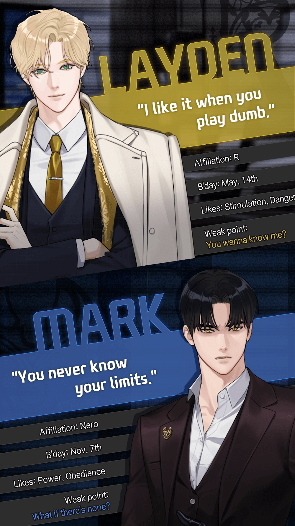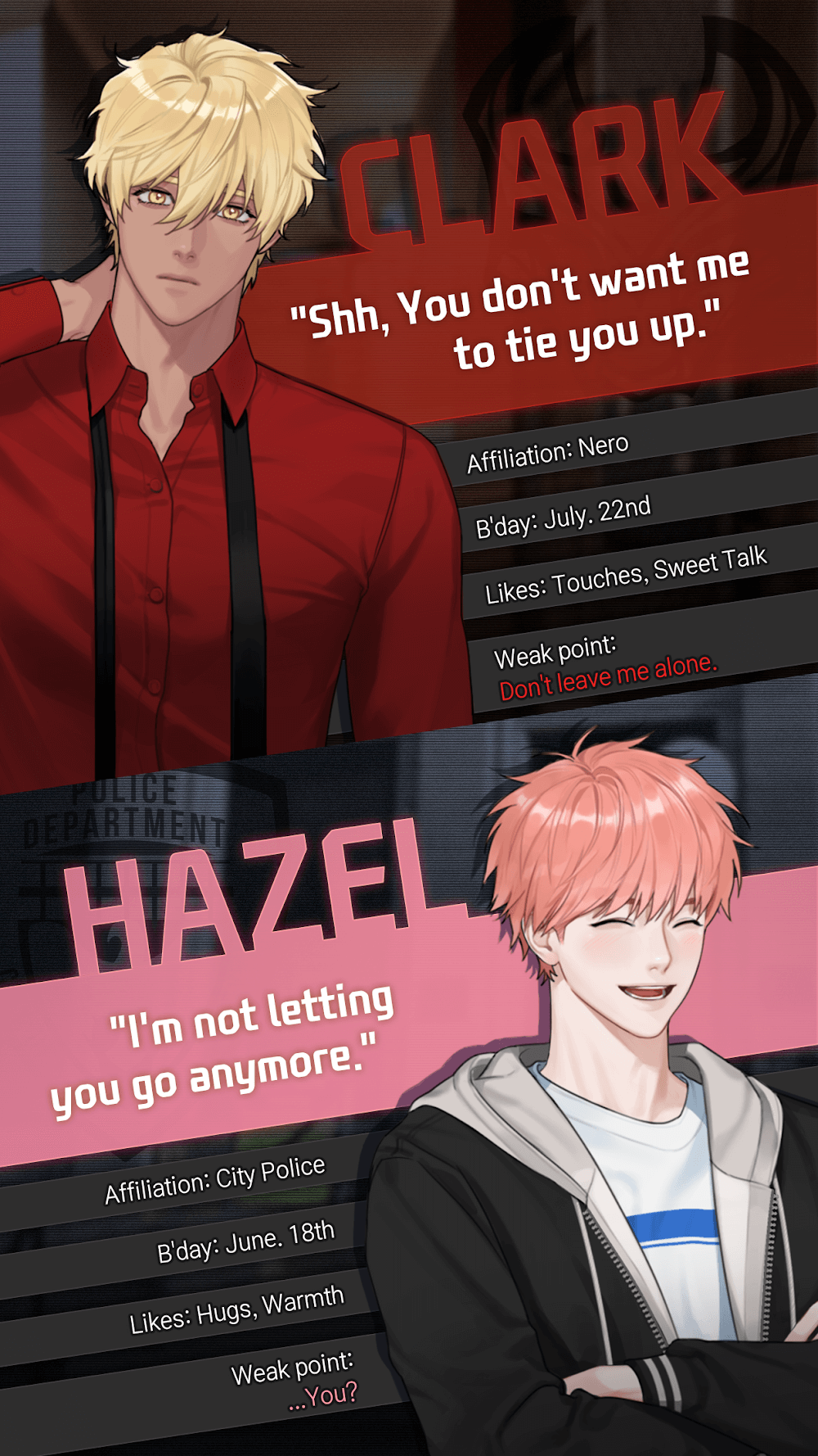 If you are a die-hard fan of boy love, you definitely cannot miss the game Killing Kiss: BL dating otome. Coming to this game, you will come across the romantic and charming love stories of boys with each other. You will experience extremely romantic, attractive, and interesting dates, giving you different, unique emotions that will immerse you in extremely sweet love stories.