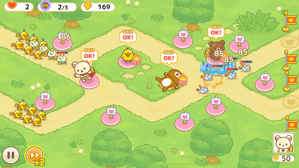 Korilakkuma Tower Defense TD gives you the opportunity to restore the peaceful days in the city you live in. The game gives you a lot of support from weapons, spirit, as well as the formation of new formations. Choose different conquest tactics in the game and try to speed up the fighting process to ensure the smoothest gameplay.