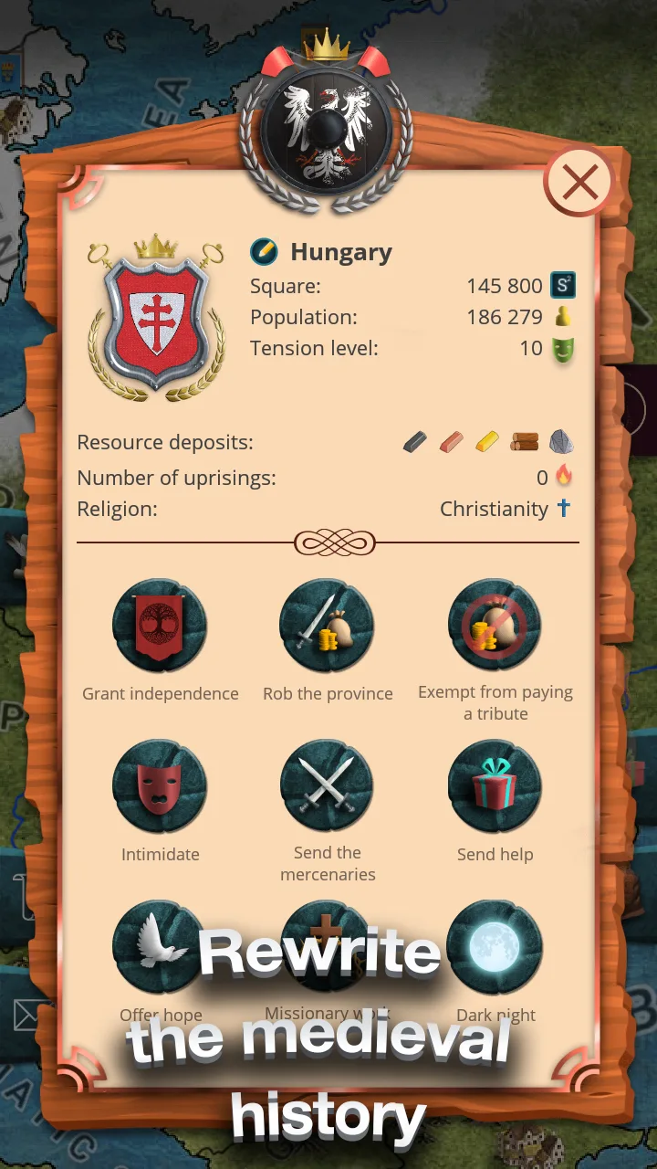 Kievan Rus is a fictional country where you can use your military power and intelligence to expand it indefinitely. KR 1 – Emperor Simulator gives players a country with a pretty good foundation. And its characteristic is to try its best to expand as quickly as possible. All other countries in the world are afraid of its military power. It all comes from the king’s smart management. Players will need to try to do internal affairs, create a peaceful country, and also use the resources they get from the people to quickly establish the most powerful military force in the world.