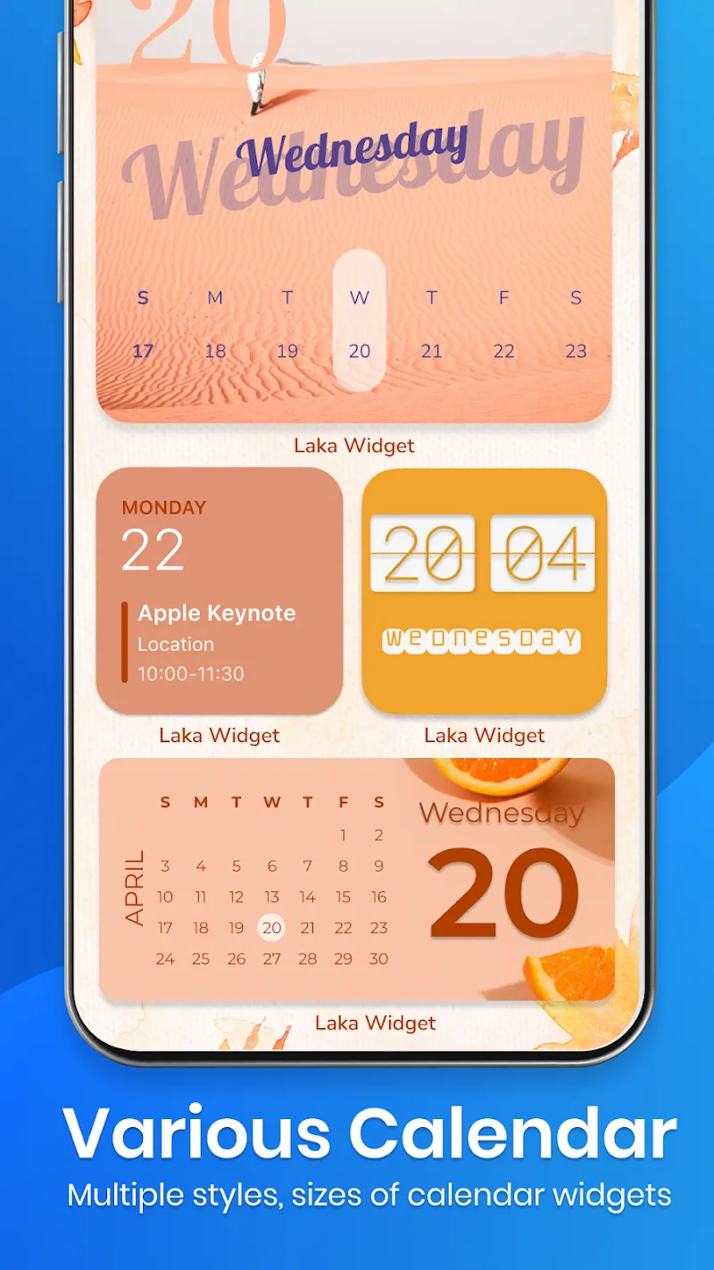 Of course, Laka widgets automatically sync with your onboard calendar, notes, music players, battery stats, and other apps to conveniently display relevant info without opening any apps. See your schedule without launching the calendar.