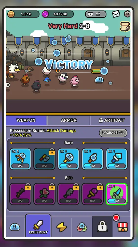 • Customizable Builds: Equip your slime army with weapons, armor, accessories, and more for strategic builds.