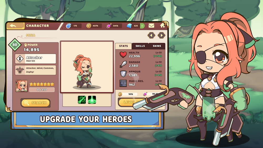 Take part in thrilling strategic battles featuring automatic combat and an Anime and Chibi style centered on a magical setting. As you make your way through an epic storyline, you will have the opportunity to personalize your avatar, fight magnificent monsters, and explore perilous dungeons. Everything is up to your decision, and you can make your own journey while diving into a dangerous fantasy world. Explore around and figure out the next steps, and enjoy the game to your heart’s content.