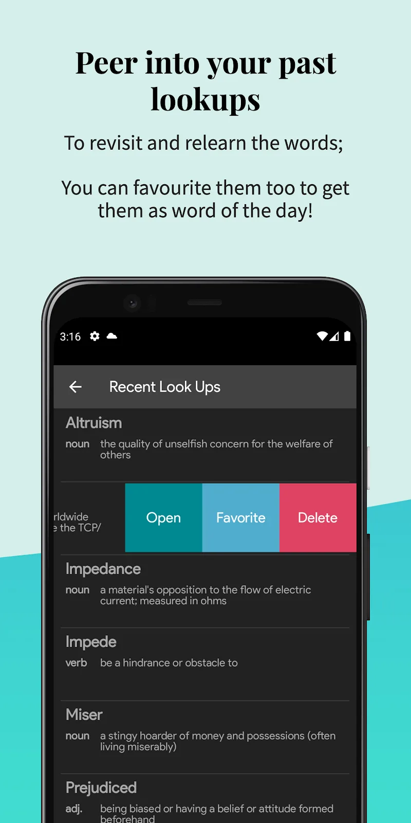 The application has an extremely large and rich vocabulary database. You can use the application to look up vocabulary, the application will give you the most accurate results. In addition, when you enter the word you want to search for, the application will provide word suggestions for you to choose from. And the app allows you to create lists and store words in them so you can easily review them.