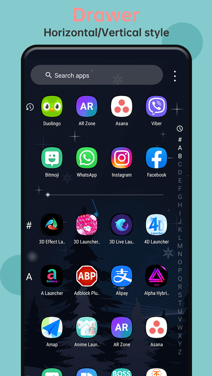 The launcher presents various things to you, including themes, live wallpapers, widgets, animations, and more, to make your device dazzling and radiant with love or romance. You can set them up manually or let the app do the courtesy. The launcher also changes the app drawer, coupled with a powerful search tool and other fascinating functions or extras, to improve your experience with this launcher. Besides that, the themes are customizable and have many extraordinary things waiting for you to explore.