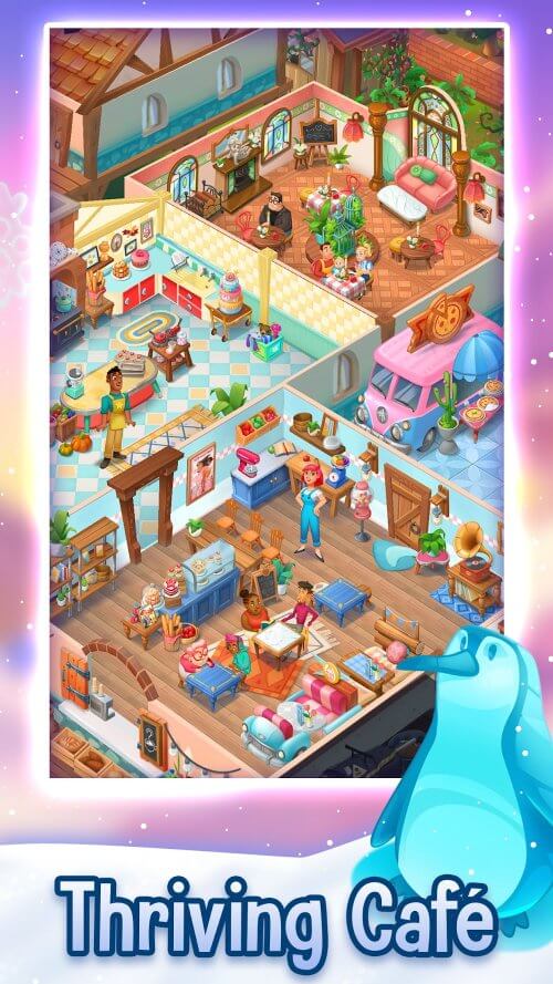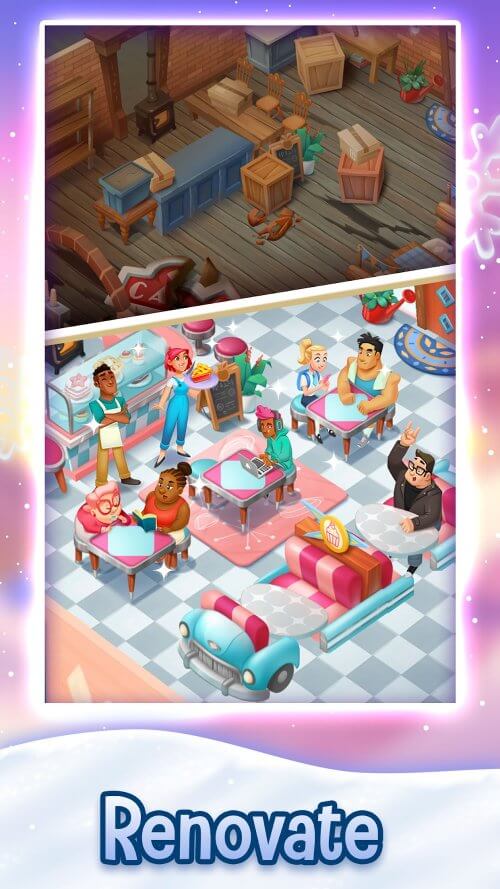 The gameplay has a merging element as the backbone to bring a sense of relaxation as you create great cakes and gradually restore the bakery with small details. Over time, the merge element will automatically evolve to new heights to expand the quality of gameplay while giving you more exploration of the bakery and the story. Besides, almost every activity requires compatible items, and it’s your job to use the merge system effectively to get things done.