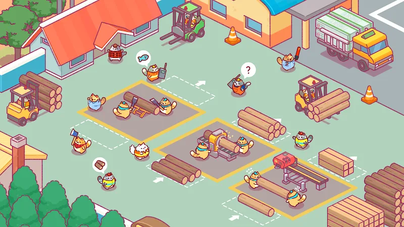 - Cat Handling Operations: Run your logging operation smoothly as cats handle felling and crafting efficiently.