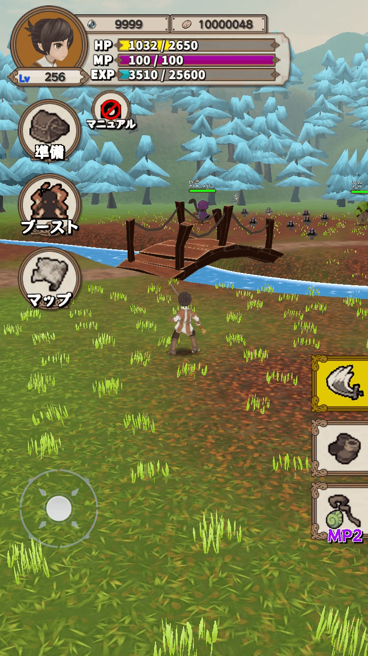 The way of moving inside Lvelup RPG is done with two hands because this is an RPG game, and you will be able to move the character freely. To speed up the movement process, on the right side of the screen, there will be a run button to help you increase speed more quickly and also create an opportunity to escape strong enemies. The attack button is also located in the same vertical row as the run button, and as long as you press it continuously, basic combos will be performed to deal more damage to the monsters you encounter. At the bottom is the button to use special skills, and for a beginner, there is nothing but healing skills in battle that will take some MP when performed. But don’t be too discouraged because strength is something that needs to be cultivated through different battles.
