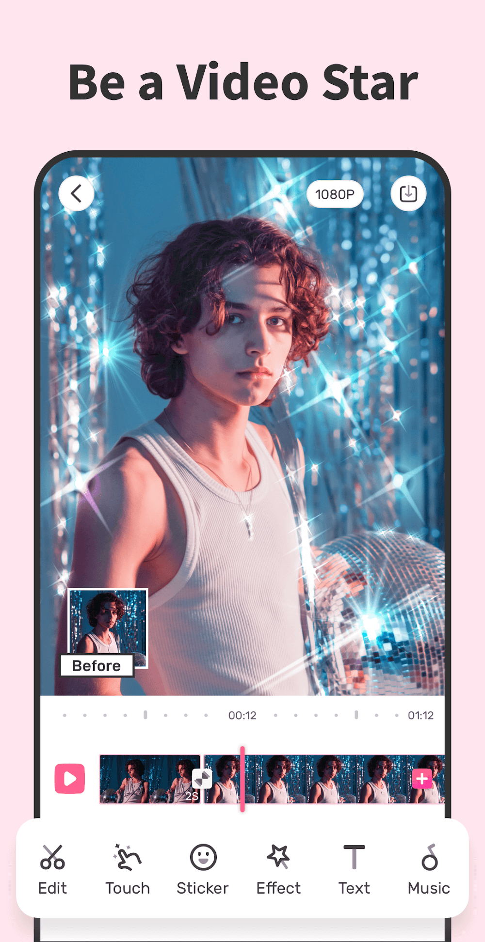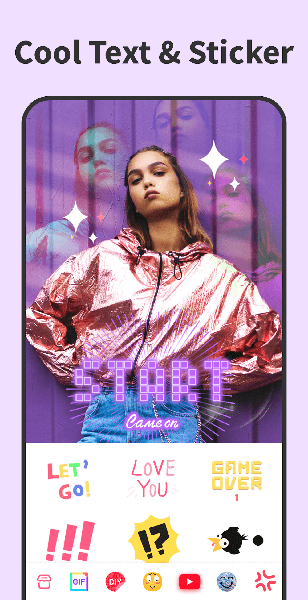 Not only sparkling effects, but the application also brings you lovely and interesting stickers and animation effects. These effects will give you extremely unique and stylish videos.