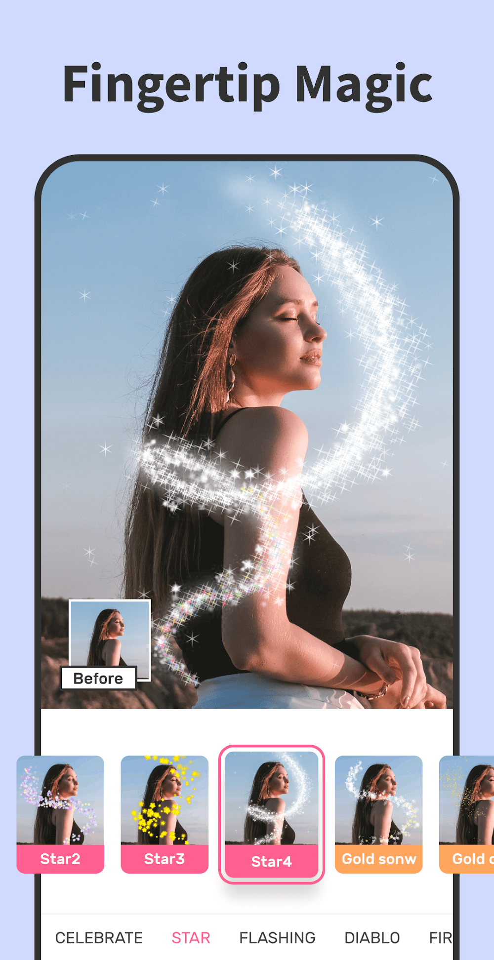 The application brings you extremely beautiful effects with many themes and diverse styles. You can use these effects to make your videos more sparkling and attractive, to post on your social networking sites and attract a lot of views and likes.