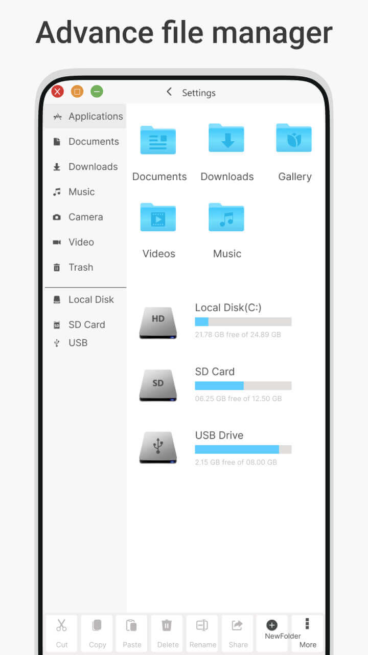 With this application, you will come to an extremely convenient file manager. With this manager, you will be able to manage all the files in your phone quickly and easily without having to use too many complicated operations.