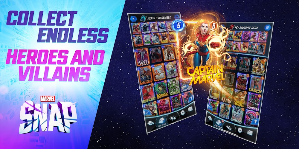 Play MARVEL SNAP, a fast-paced, action-strategy card game that will get you one step closer to realizing your dream of assembling your team of heroes. Compared to other card games, each battle in MARVEL SNAP typically lasts less than three minutes, and the developer aims to focus only on the essential action gameplay of the game.